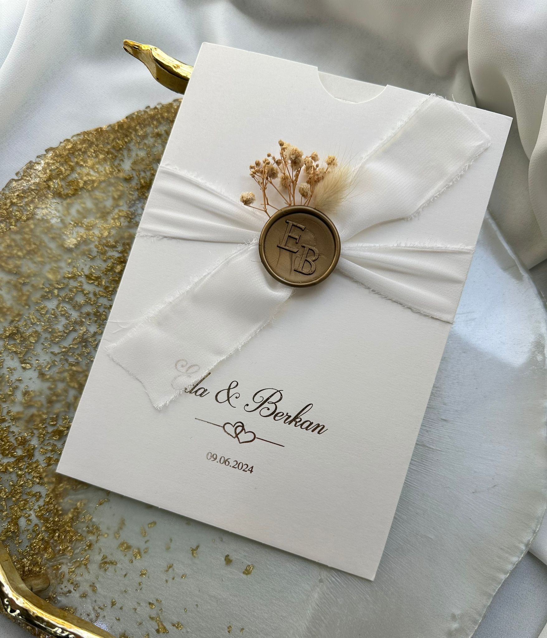 Matériaux utilisés : faire part intérieur en papterie, méthode d'embossage| enveloppe avec papeterie 300g